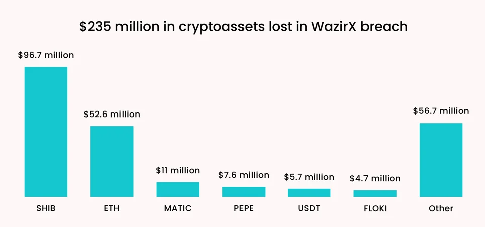Hacket inträffade den 18 juli och riktade sig mot en multi-signaturplånbok med sex signaturer: fem från WazirX och en från Liminal. Det ledde till slut till en förlust av nästan 45% av WazirX:s lagrade tillgångar.