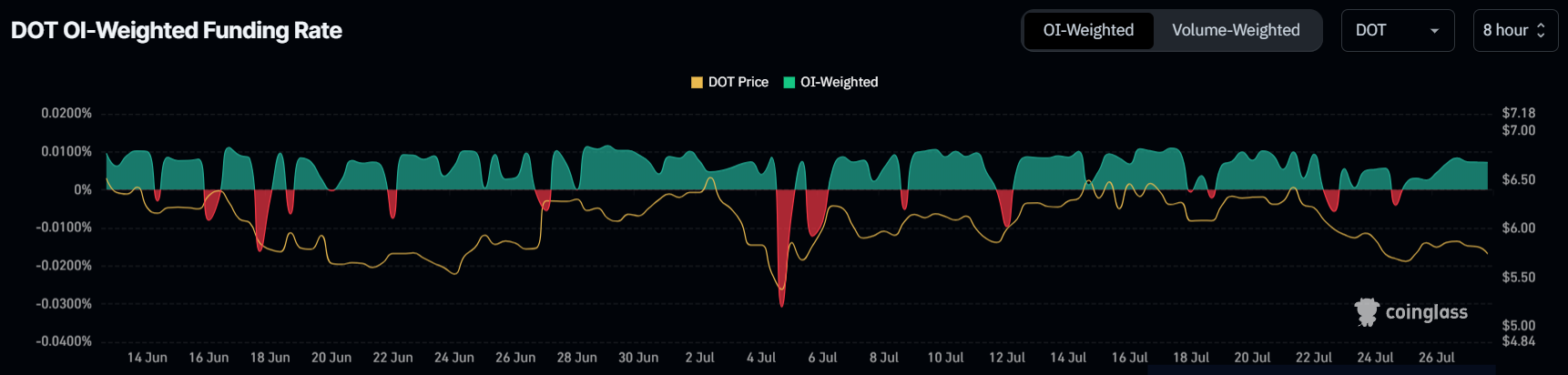 Den positiva finansieringsräntan är en viktig indikator på investerarnas sentiment. Det visar att handlare är villiga att betala en premie för att hålla långa positioner och satsa på framtida prisökningar för DOT. Denna optimism kan driva ytterligare investeringar och intresse för kryptovalutan.