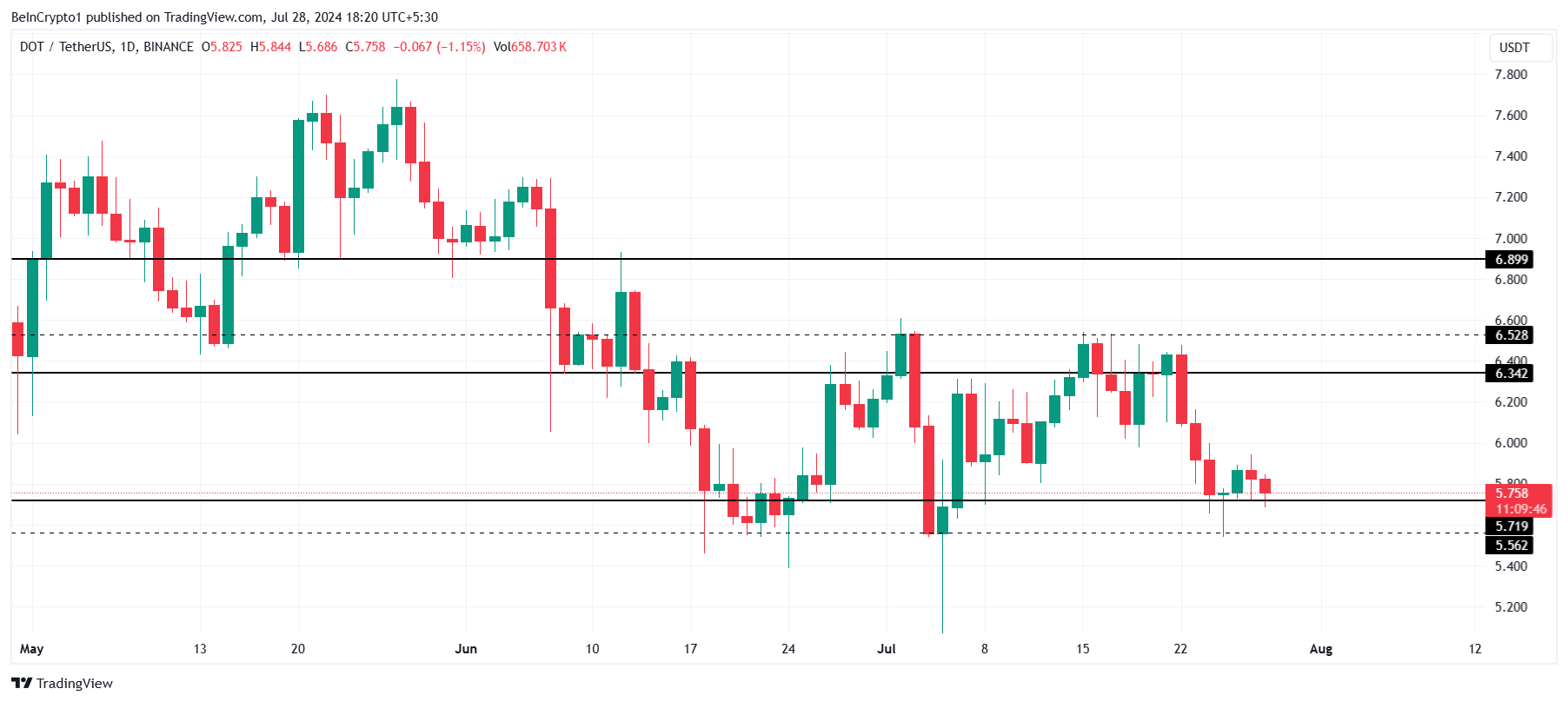 Å andra sidan kan ett misslyckat intrång fortsätta konsolideringen. Det nuvarande hausseartade momentumet kan minska när DOT når $6,5 igen, vilket skulle ogiltigförklara de positiva utsikterna.