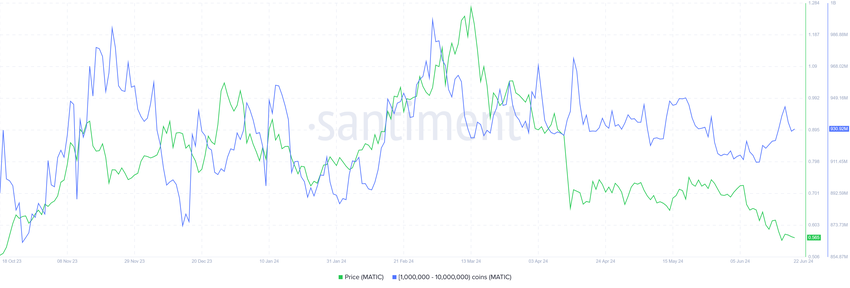 Adresserna som innehar mellan 1 miljon och 10 miljoner MATIC har nyligen ökat sitt innehav. Under de senaste tio dagarna har valar köpt cirka 33 miljoner MATIC till ett värde av mer än 18,6 miljoner dollar. Detta är ett positivt tecken för Polygons inhemska token.