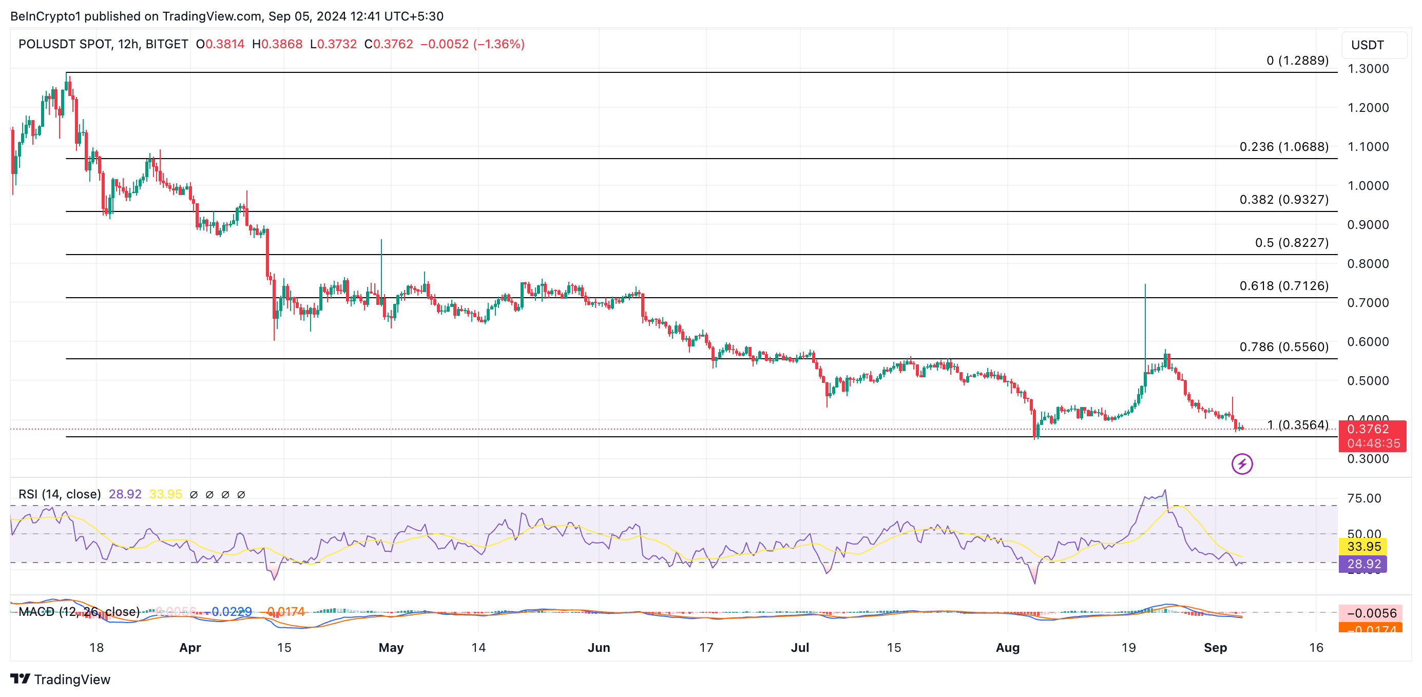POL handlas för 0,37 USD vid pressens tidpunkt och visar en dämpad reaktion på tokenuppgraderingen. Under de senaste 24 timmarna har tokenens pris sjunkit med 3%. Dock har dess handelsvolym skjutit i höjden med 925% under samma period.
