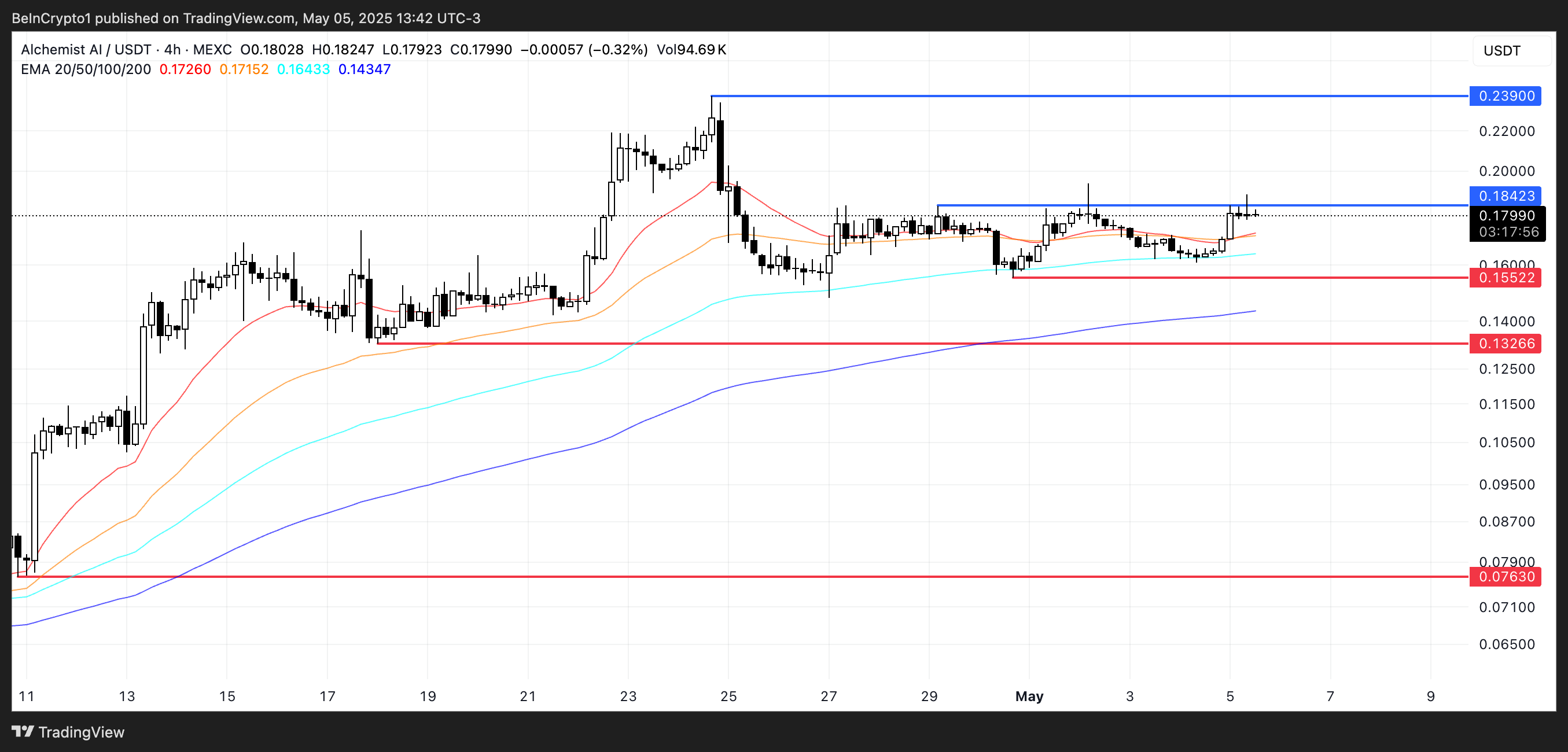 Tekniskt sett närmar sig ALCH ett kritiskt motstånd runt 0,184 USD. Ett bekräftat genombrott över denna nivå kan leda till nya rekordhöjder, med 0,239 USD som nästa stora mål.