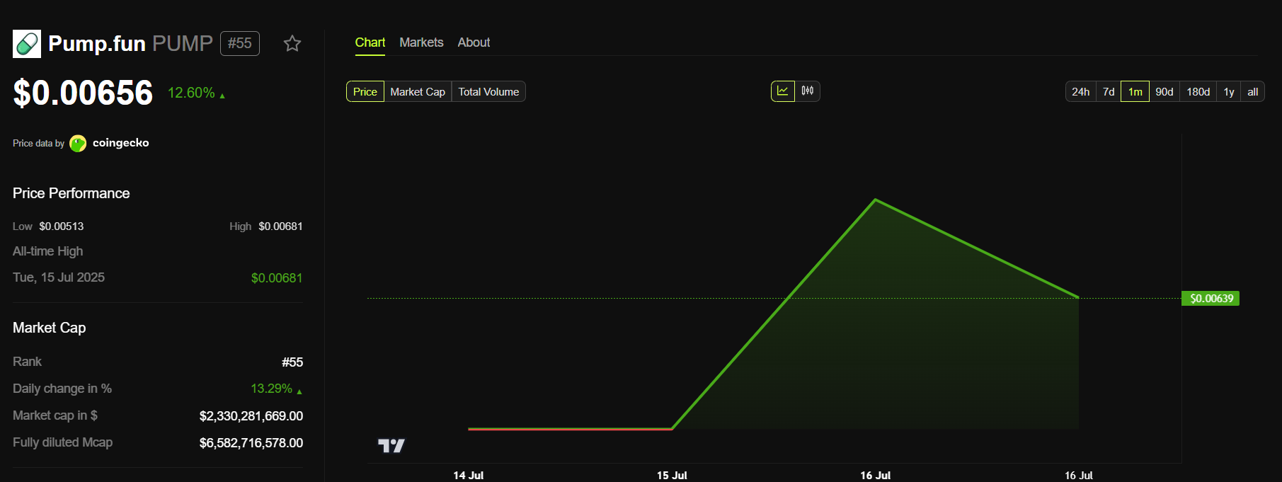 Vid skrivande stund handlades PUMP för 0,00656 USD, en ökning med 12 % under de senaste 24 timmarna.