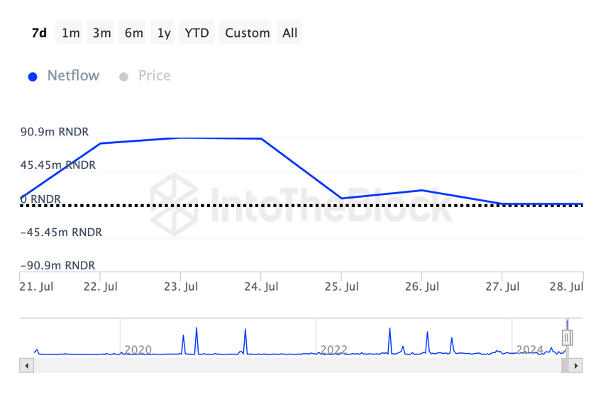 Dessutom har RENDER-valar minskat sin riskexponering under den senaste veckan. Under den perioden har tokenens stora innehavares nettoflöde sjunkit med 99%.
