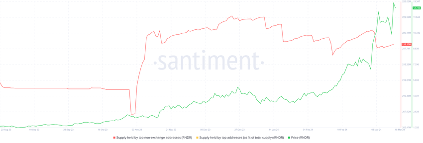 Detta är viktigt eftersom valadresser dominerar 50% av all RNDR-tillförsel, vilket gör deras rörelse påverkande på priset.