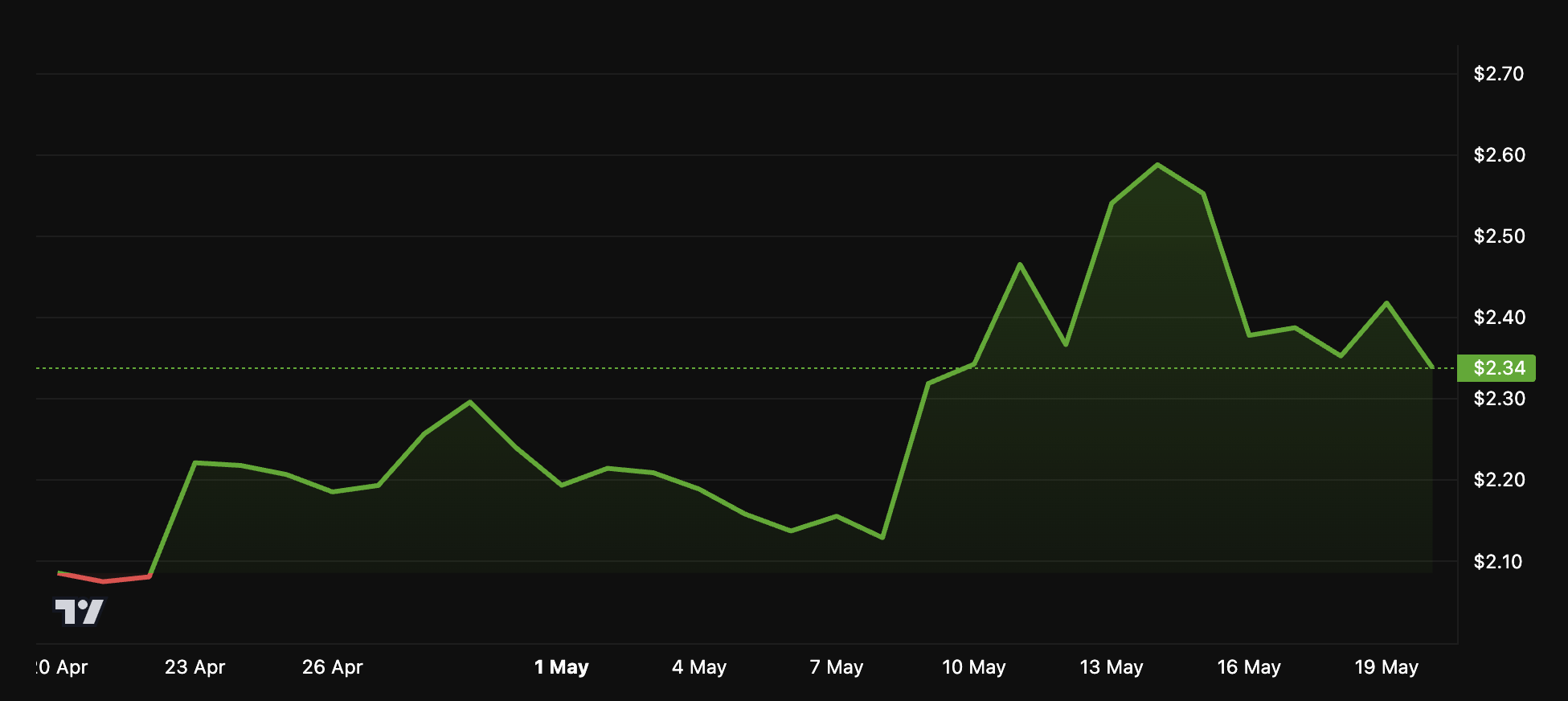 Vidare visade BeInCrypto-data att värdet har minskat med 3,2 % det senaste dygnet. Vid skrivande stund var XRP:s handelspris 2,3 USD.