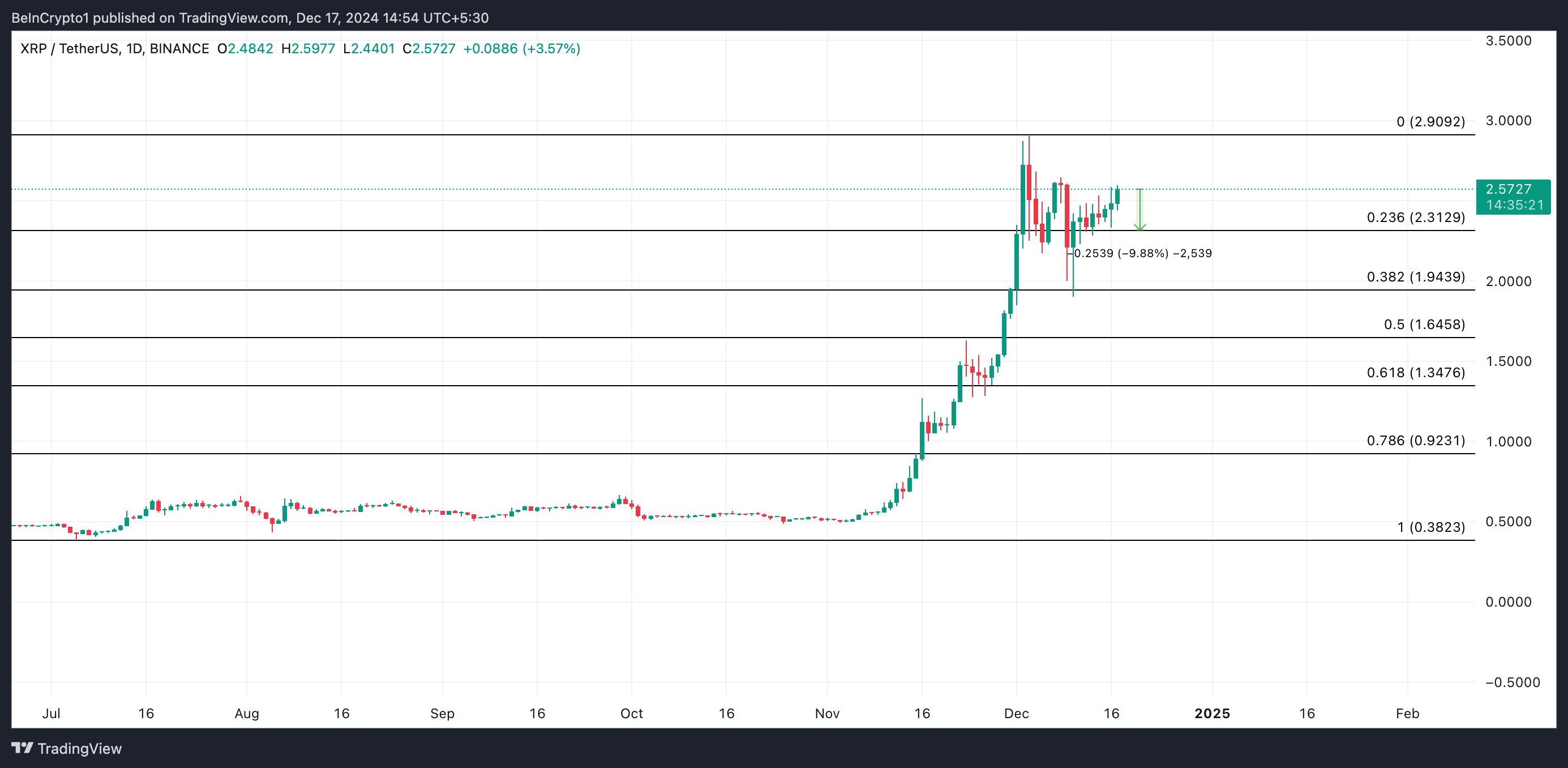 Å andra sidan, om lanseringen av RLUSD-tokenen utlöser en förändring i marknadstrender och försäljningen avtar, kan XRP nå sitt fleråriga högsta på 2,90 USD.