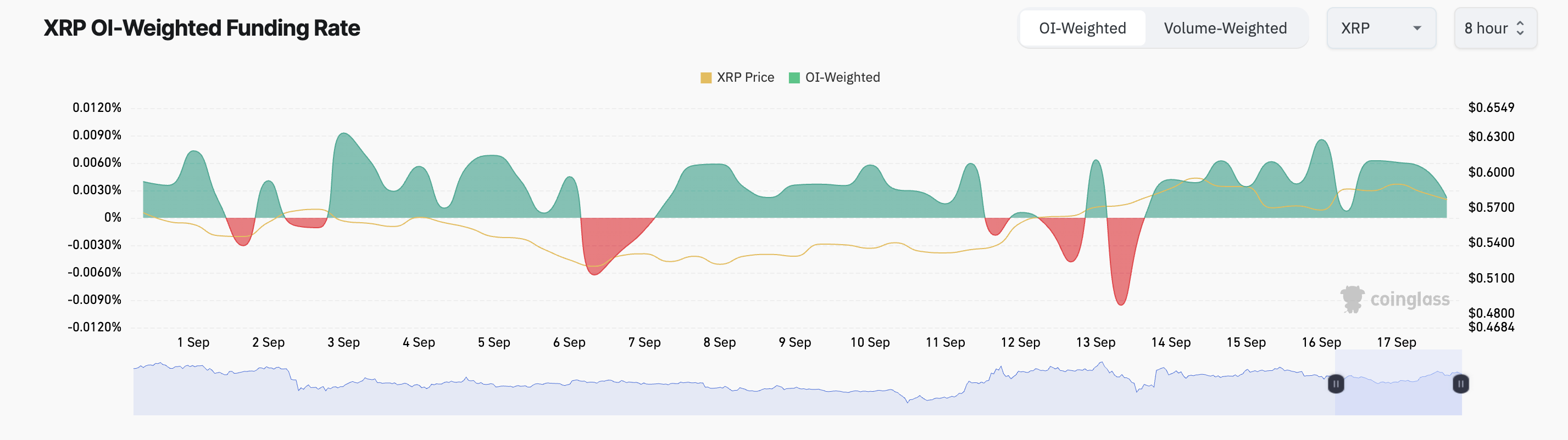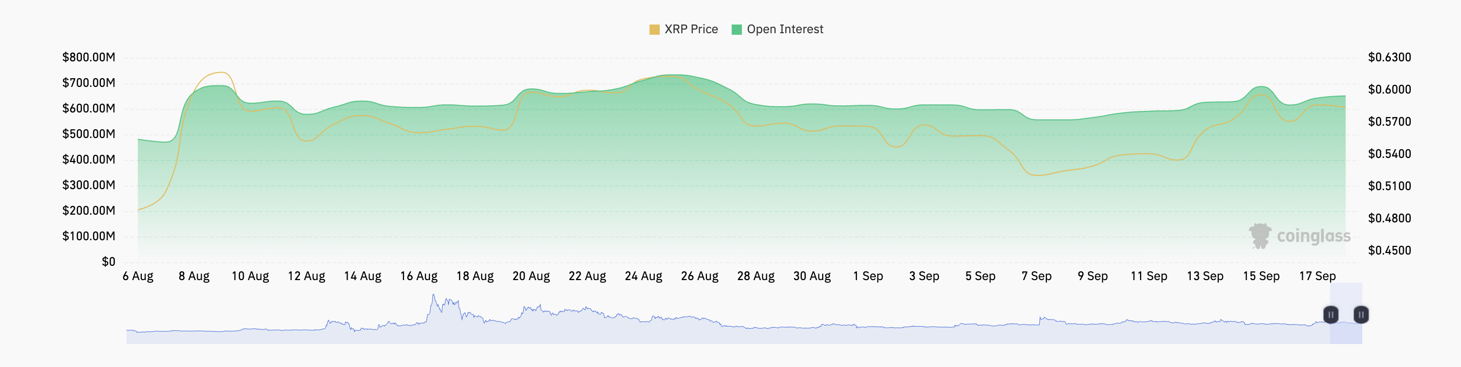 Ripples prisnedgång under de senaste 24 timmarna har också påverkat dess derivatmarknad. Enligt data från Coinglass har handelsvolymen för XRP-derivat minskat med 22% under denna period.