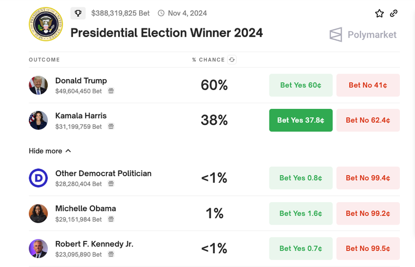 Men trots sina strategier och sitt engagemang för en transformativ ekonomisk politik står Kennedy inför höga odds i sin presidentkampanj. Decentraliserade vadslagningsplattformar som Polymarket visar att Kennedys chanser att vinna är mindre än 1%. Däremot är Trumps utsikter mycket högre, med en 60-procentig sannolikhet att säkra presidentposten.