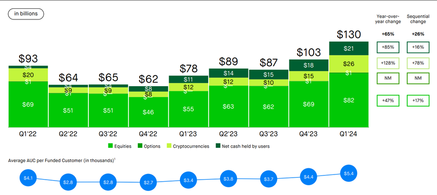 Dessutom rapporterade Robinhood en betydande ökning av kryptotillgångar under förvaring, som uppgick till 26 miljarder dollar i slutet av mars. Detta motsvarar en ökning med 78% från slutet av 2023.