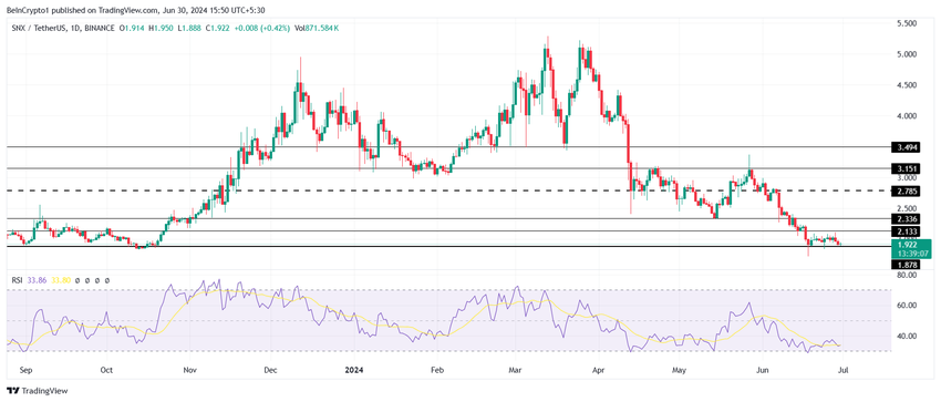 Ändå, om investerare väljer att sälja innan detta händer i brådska för att kompensera för förluster, kan SNX falla under $1,8. Detta skulle förstärka förlusterna och pressa RWA altcoin till $1,5.