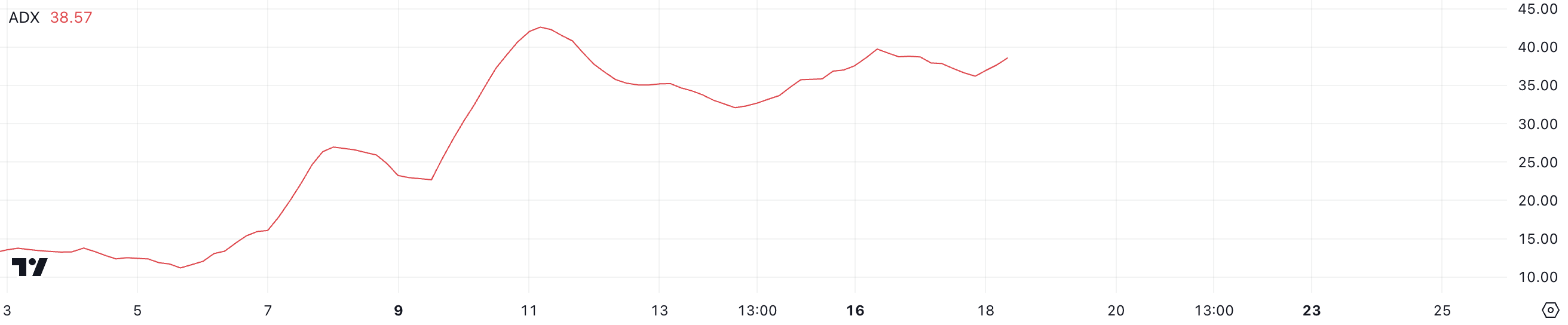 WIF ADX är för närvarande på 38, upp från 36 igår, vilket signalerar en stark och växande trend. Men med WIF i en nedåtgående trend indikerar den stigande ADX att det negativa momentumet stärks. Detta tyder på att den nedåtgående rörelsen sannolikt fortsätter, eftersom säljare förblir dominerande på marknaden.