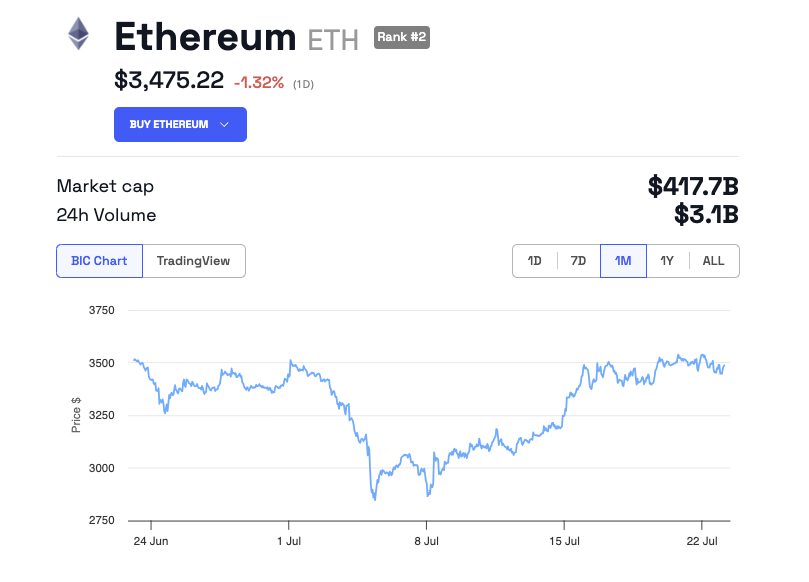 Trots dessa framsteg var Ethereums marknadsrespons förvånansvärt dämpad, med ett prisfall på 1,32%. Denna nedgång följde omedelbart efter tillkännagivandet, en typisk “sälj-nyheter”-effekt, där priset kortvarigt sjönk till 3 422 dollar innan det landade på cirka 3 475 dollar. Med tanke på betydelsen av SEC:s beslut förbryllade detta ljumma svar många investerare och analytiker.
