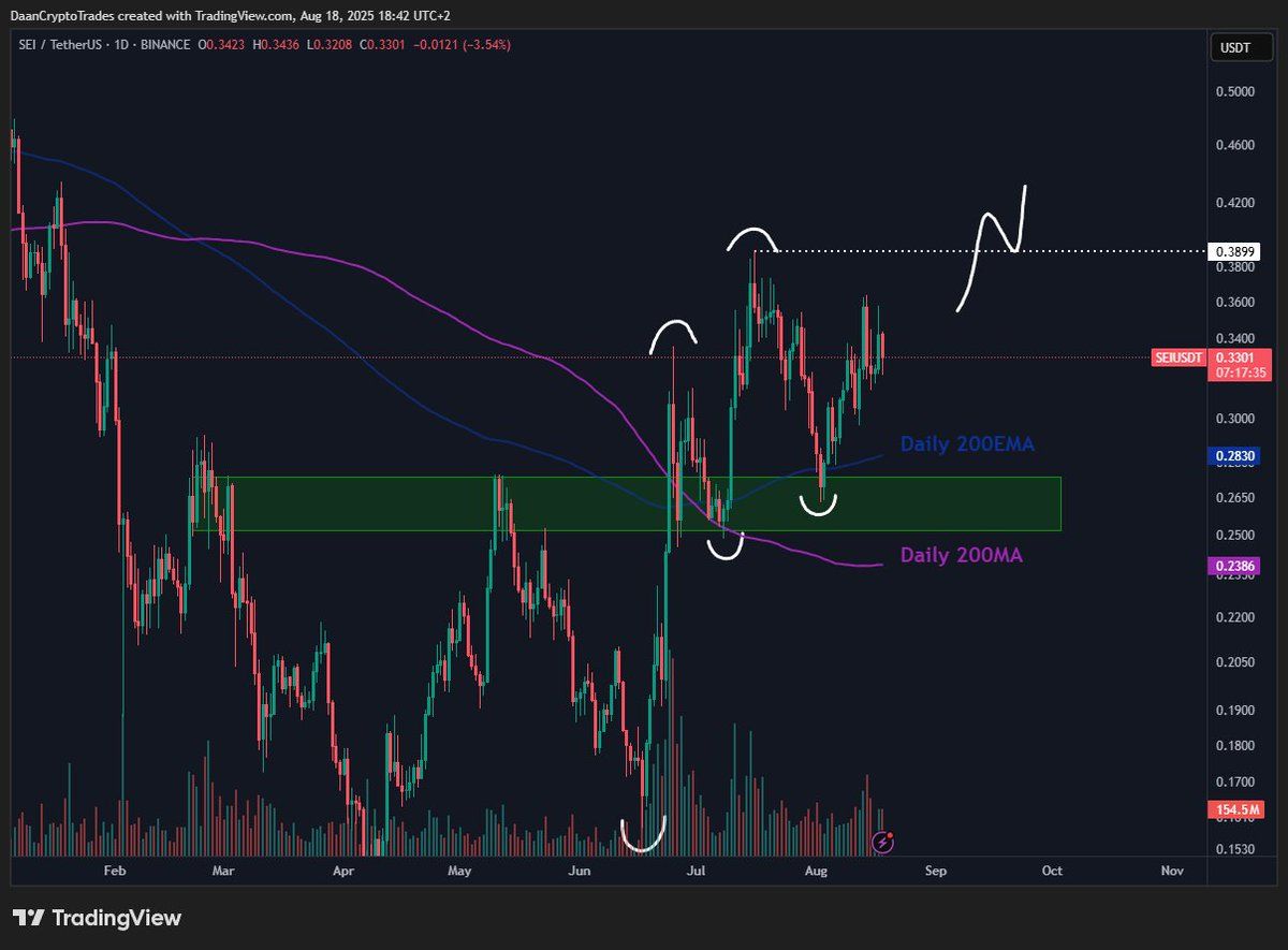 Andra analytiker, som Byzantine General, betonade att SEI har hållit sin styrka under en bredare marknadskorrigering, vilket ytterligare stärker investerarnas förtroende. Men analytikern Daan Crypto noterar att SEI behöver bryta igenom 0,39 USD-nivån för att fortsätta sin uppåtgående trend. Denna nivå sammanfaller med den lokala toppen från mitten av juli.