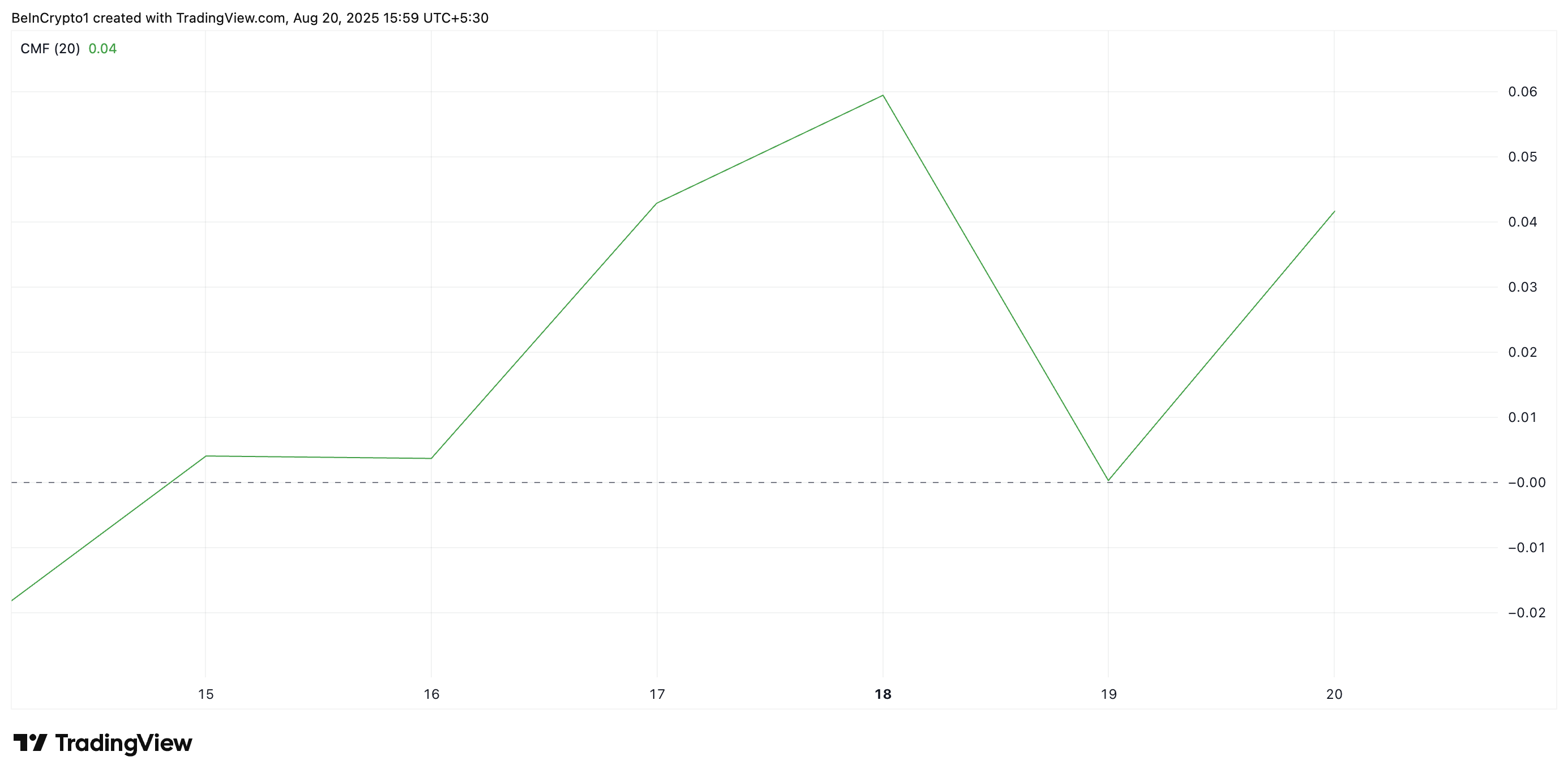 Vidare stöder altcoinens Chaikin Money Flow (CMF) denna positiva utsikt. Avläsningar från meme-coinens dagliga diagram visar att CMF stiger stadigt, även när SHIB:s pris sjönk, vilket bildar en annan positiv avvikelse.