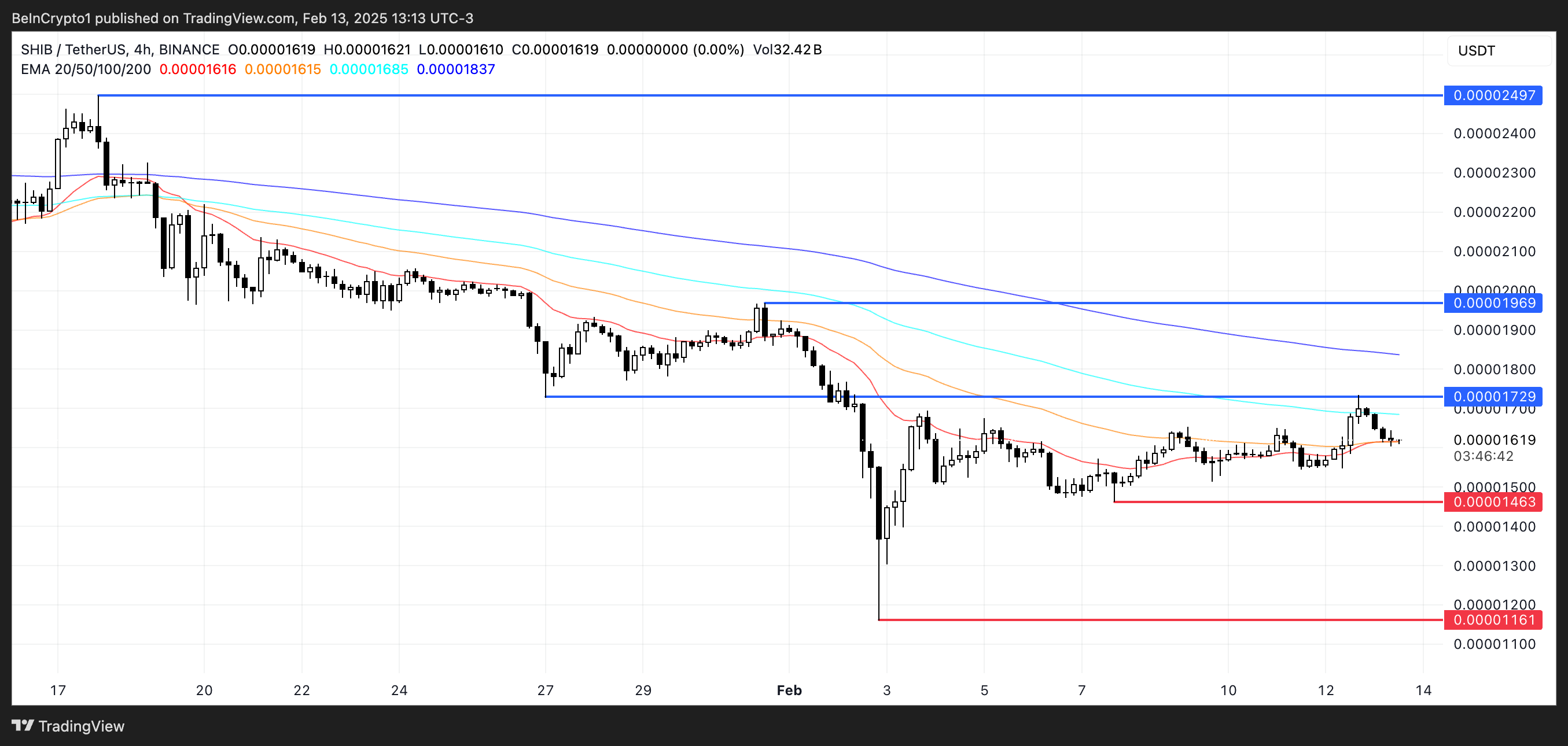 Om SHIB-priset kan etablera en uppåtgående trend, kan det testa motståndet vid 0,0000172 USD, en nivå det nyligen misslyckades med att bryta. Ett lyckat genombrott kan leda till en uppgång mot 0,0000196 USD, med en stark uppåtgående trend som potentiellt återtar 0,0000249 USD, dess högsta pris sedan mitten av januari.