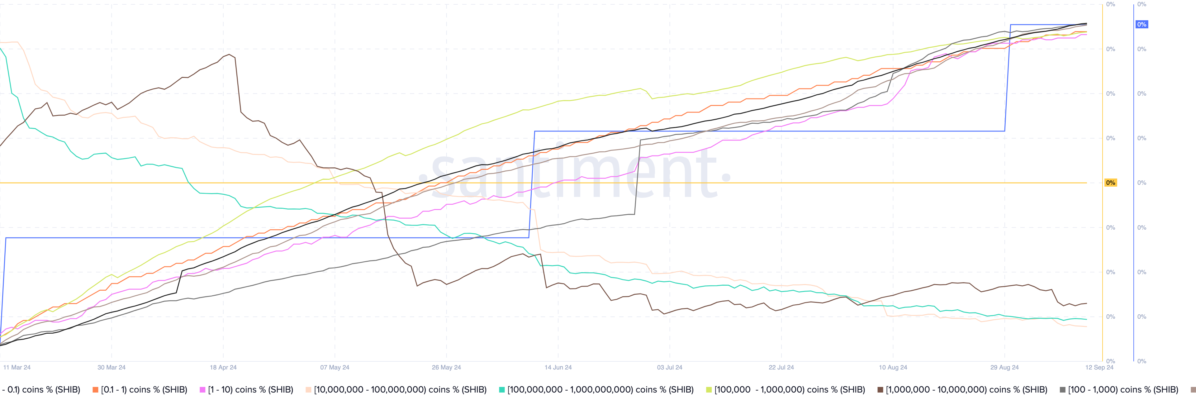 En annan indikator på FUD är tokenfördelningen mellan detaljhandels- och stora investerare. Enligt Santiment har SHIB-innehavare med 100 till 1 miljon tokens ackumulerat.