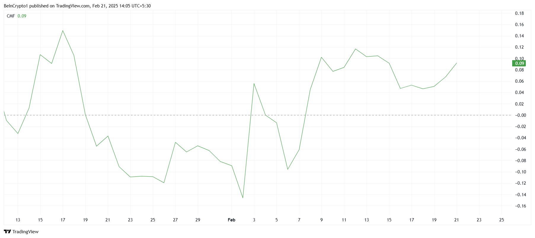 Shiba Inus makromomentum visar tecken på återhämtning, drivet av en betydande ökning av kapitalinflöden. Chaikin Money Flow (CMF) indikatorn har stigit stadigt under den senaste veckan, vilket signalerar att investerarnas optimism återvänder. Denna trend speglar en växande tro på Shiba Inus potential för återhämtning när fler medel flödar in i tillgången.