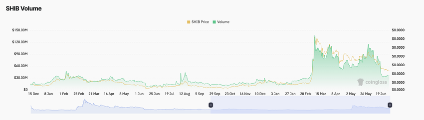 Med 35,43 miljoner dollar registrerade vid presstillfället ligger SHIB:s dagliga handelsvolym för närvarande på en låg nivå som senast observerades i februari.