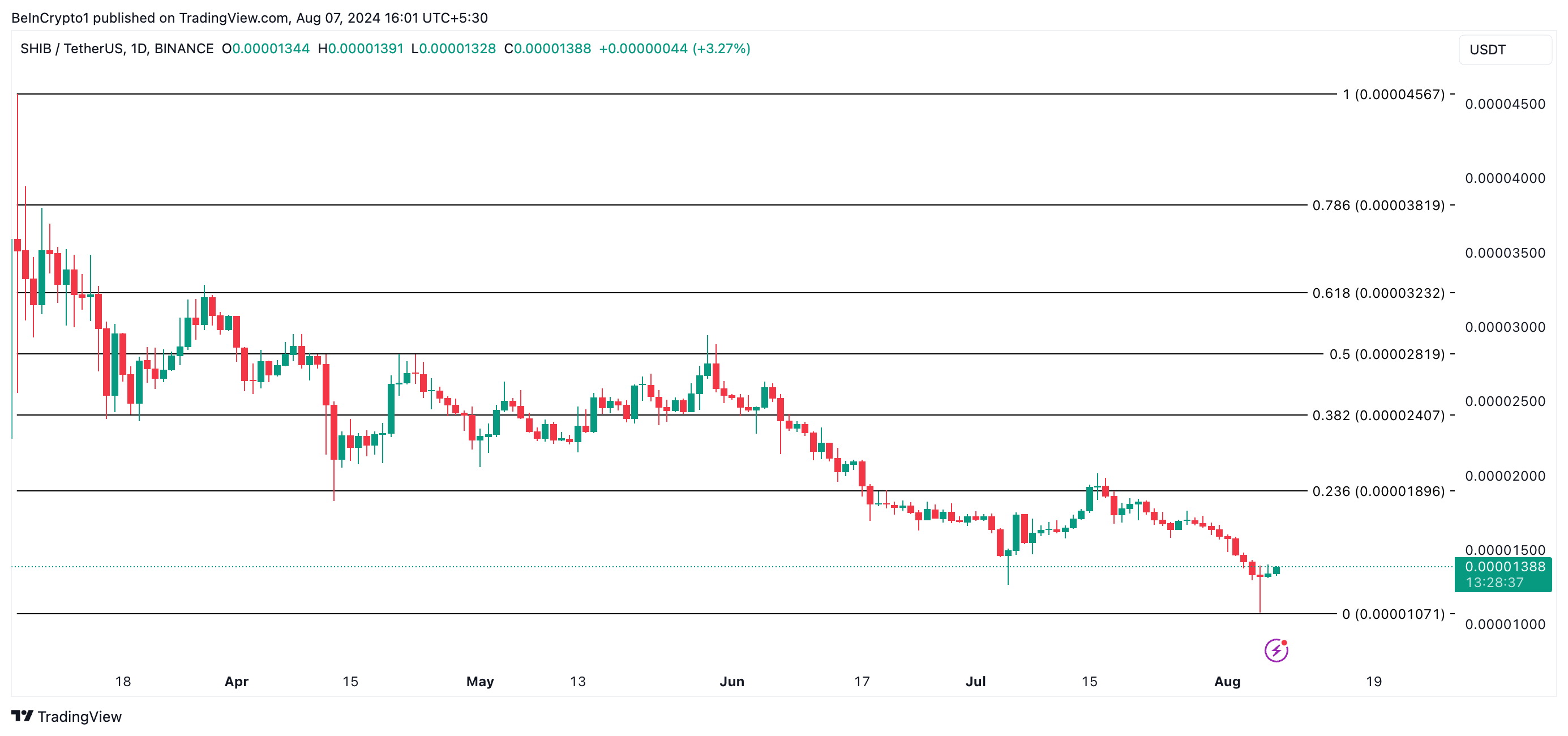 Men om säljtrycket minskar och köpaktiviteten tar fart, kommer den baisseartade tesen ovan att ogiltigförklaras eftersom meme-myntets värde kommer att stiga till $0,000018.