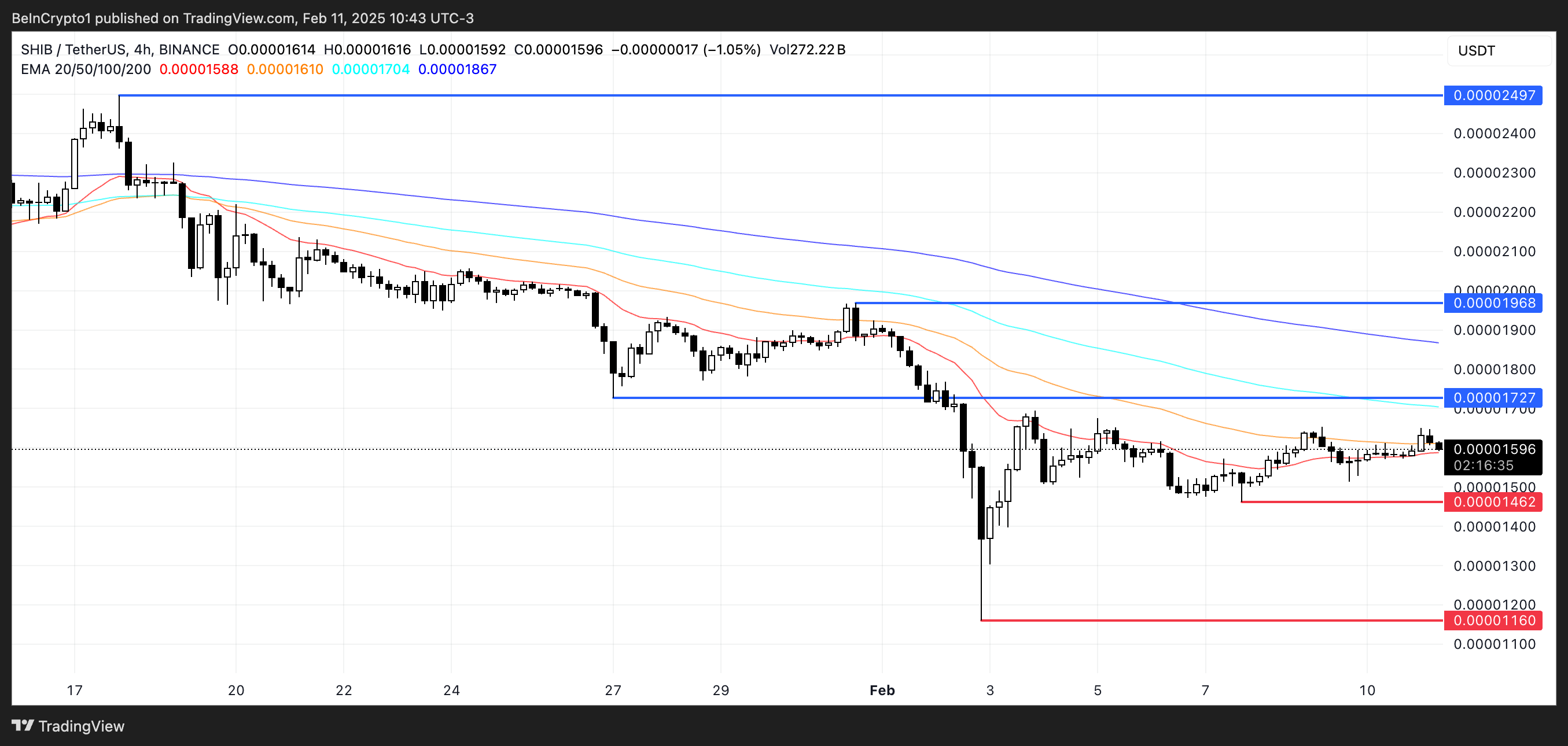 Men om RSI fortsätter att sjunka under 50 kan det indikera minskande efterfrågan, vilket gör SHIB sårbart för ytterligare konsolidering eller till och med en nedgång.