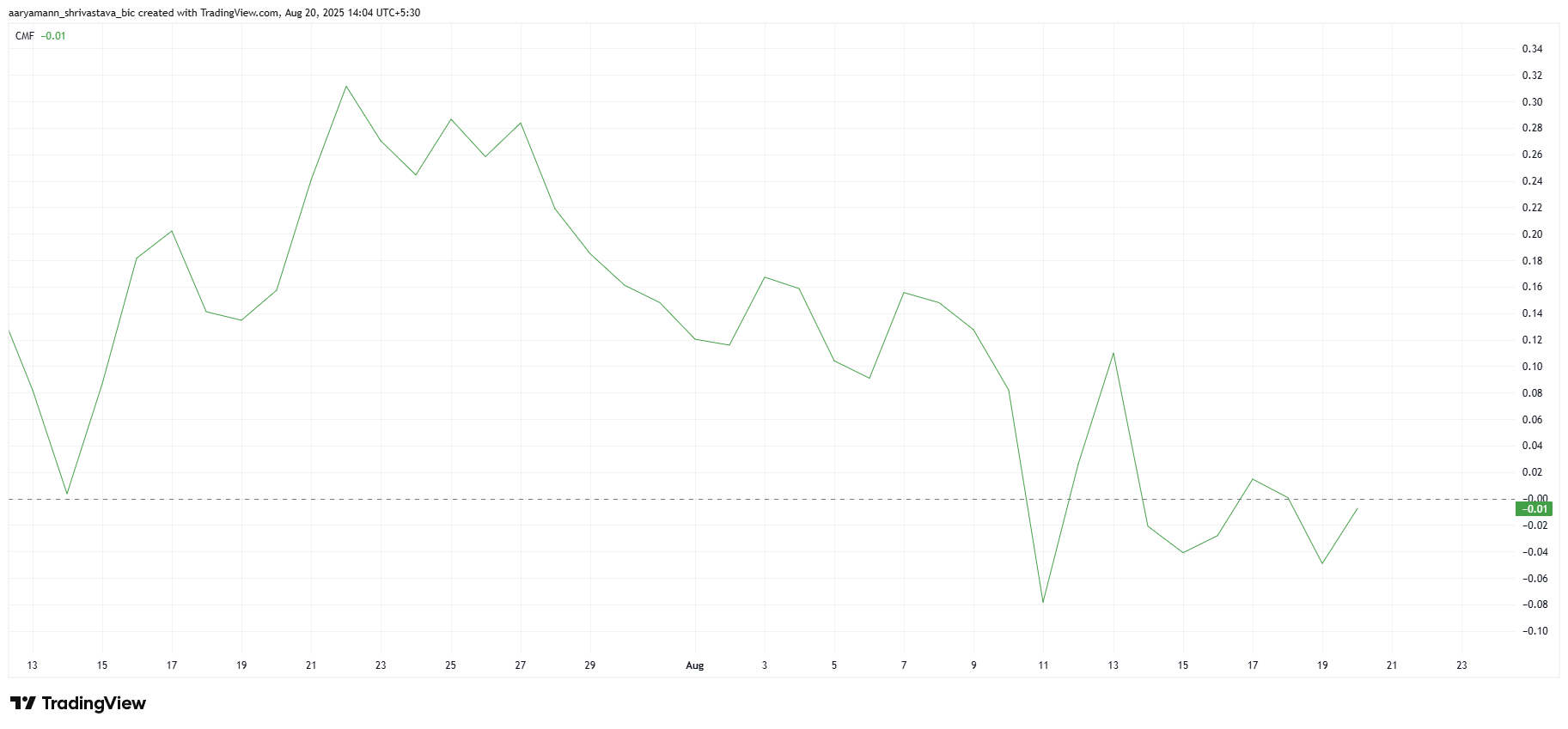 Den övergripande makrotrenden för Solana visar tecken på påfrestning då Chaikin Money Flow (CMF) indikatorn just nu noterar en nedgång. CMF, som spårar kapitalinflöden och utflöden, ligger under nollstrecket, vilket tyder på att utflöden överstiger inflöden.