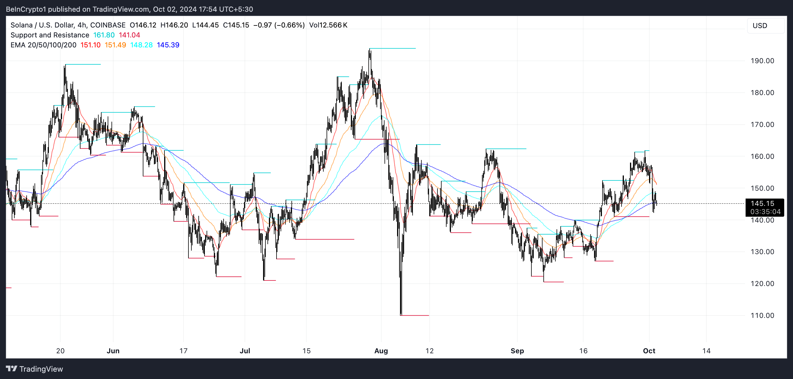 Ett sådant scenario föregår ofta en trendomvändning, där tillgångens pris kan börja klättra eftersom marknadsdeltagarna uppfattar det som undervärderat. Därför kan Solanas pris, enligt dess RSI-mått, vara på väg mot en återhämtning, och en uppåtgående trend kan vara i sikte när investerare ser att priset är lägre.
