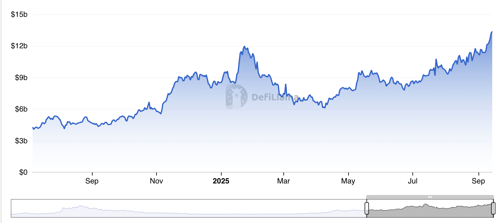 Enligt DefiLlama är Solanas DeFi TVL på en rekordhög nivå av 13,38 miljarder USD, efter att ha ökat med 18 % den senaste veckan.