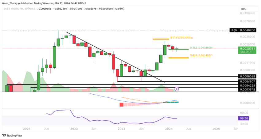 Solana hittar starkt stöd mot Bitcoin på 0.382 Fib-nivå