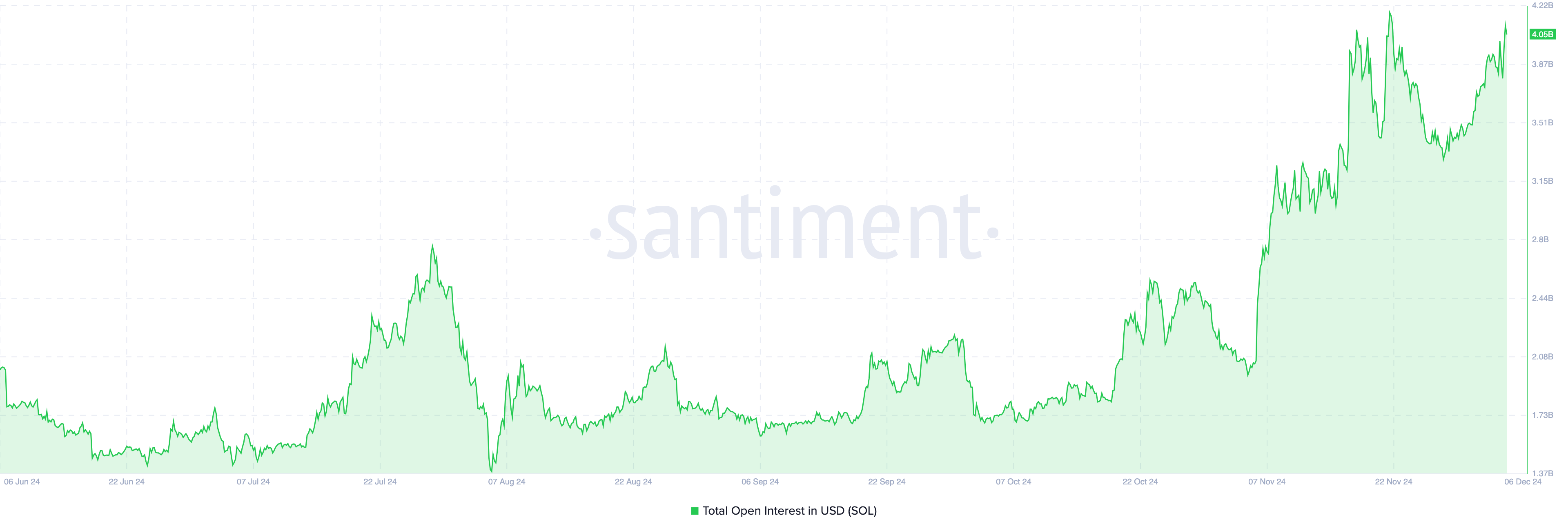 Enligt Santiment har Solanas OI ökat till 4,05 miljarder USD. Med tanke på denna position kan SOL handlas mycket högre än 239 USD de kommande dagarna.