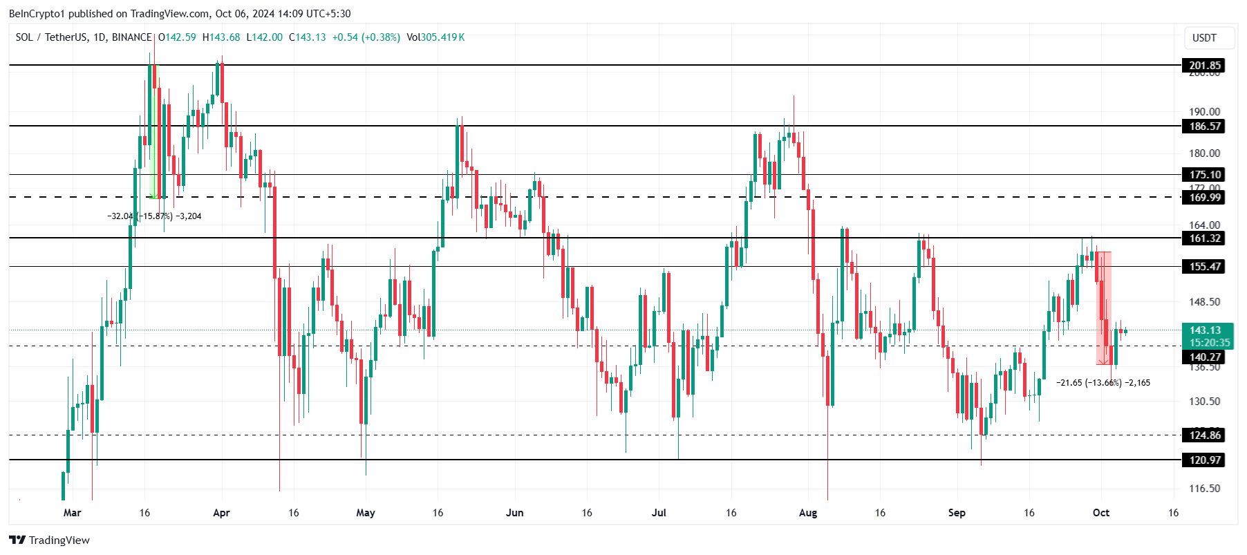 Solanas (SOL) pris sjönk nyligen till 143 USD, vilket väckte oro för dess återhämtning i de nuvarande marknadsförhållandena.