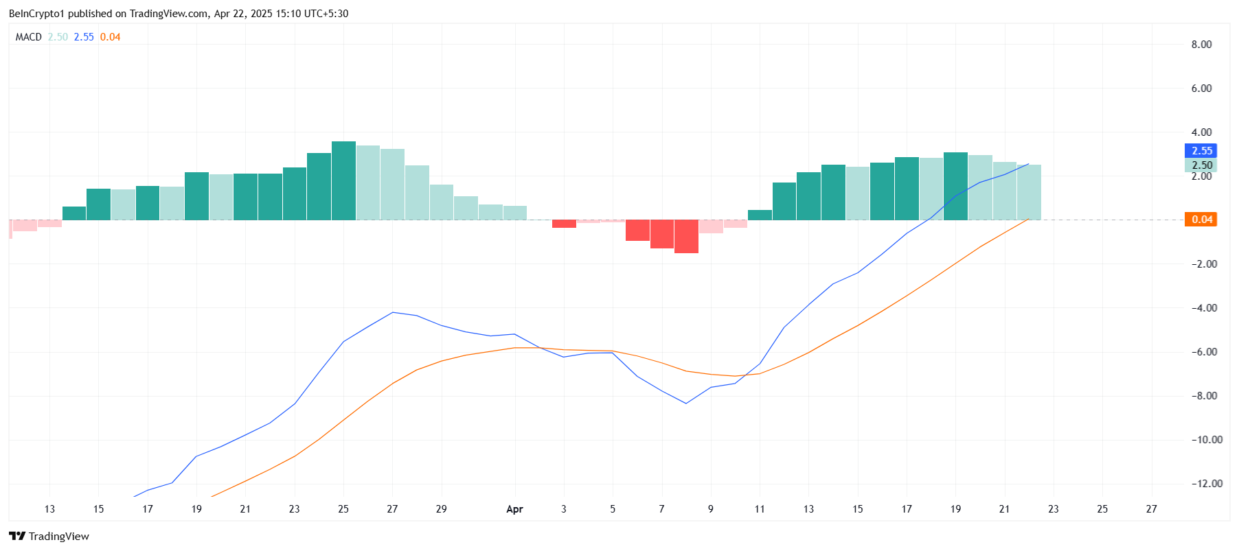 Trots den starka marknadskänslan visar tekniska indikatorer som MACD att Solanas positiva momentum visar tecken på att avta. MACD-histogrammet har börjat visa minskande staplar, vilket kan indikera att köppressen minskar. Även om denna minskning fortfarande är mild, är det värt att hålla ett öga på för eventuella tecken på en förändring i momentum.