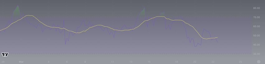 När vi analyserar SOL 4-timmars prisdiagram ser vi tydligt att 20 EMA-linjen nästan korsar under 50 EMA-linjen. Exponentiella glidande medelvärden (EMA) är tekniska indikatorer som används på finansmarknaderna för att jämna ut prisdata under en viss period, vilket ger större vikt till de senaste priserna för att göra dem mer lyhörda för ny information.
