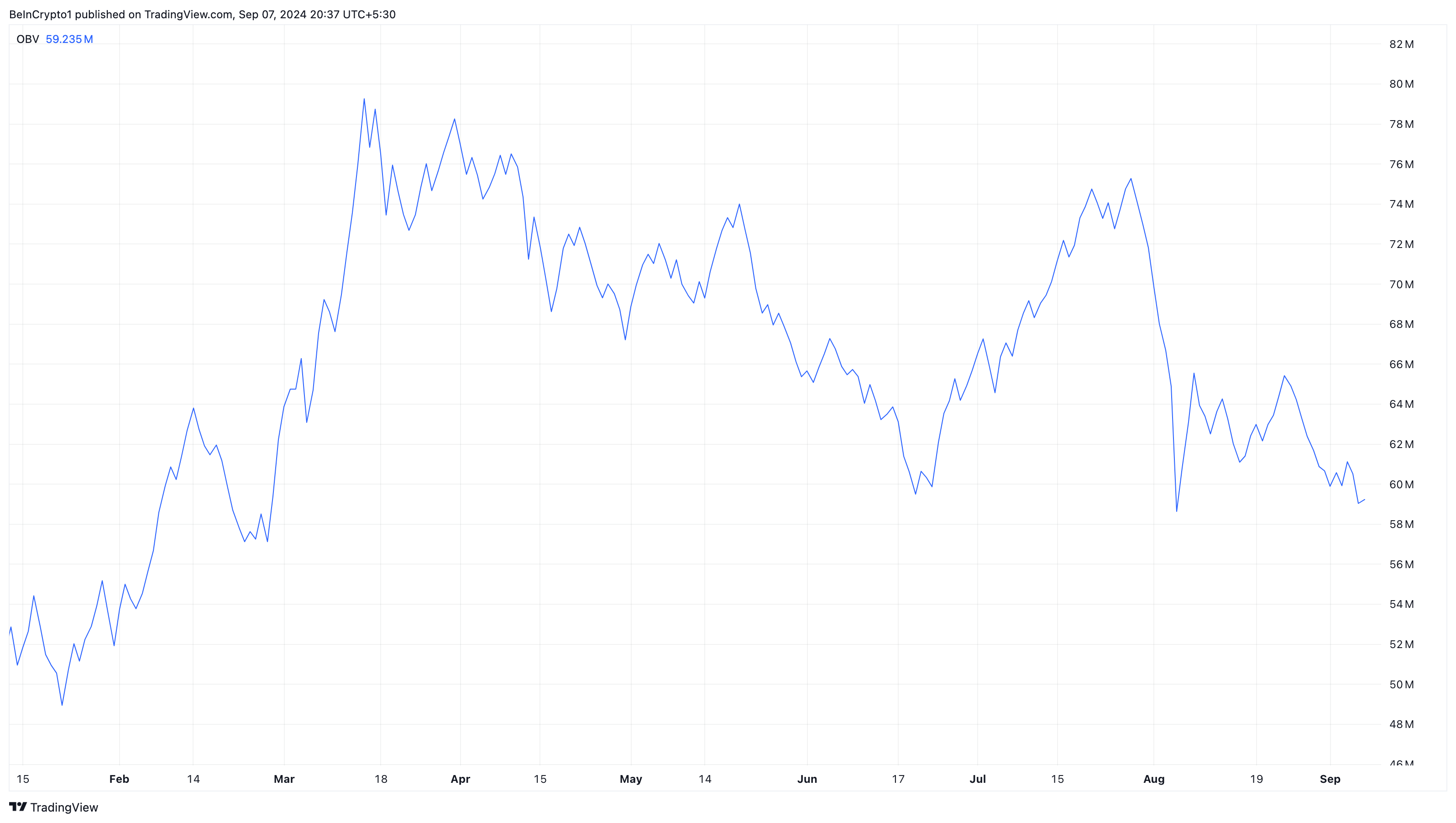Om Solanas pris faller under denna region, kan det sjunka ytterligare till 110 USD. Det negativa utsikterna förstärks av On Balance Volume (OBV)-indikatorn som belyser marknadens negativa struktur.