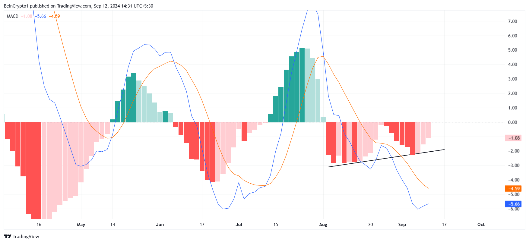 När vi ser på Solanas makromomentum visar Moving Average Convergence Divergence (MACD) ett mönster av dubbelbotten-divergens. Detta anses ofta vara en nyckelindikator för en potentiell omvändning i marknadssentimentet. För Solana antyder denna divergens att det baisseartade momentet försvagas och att optimismen gradvis ökar.
