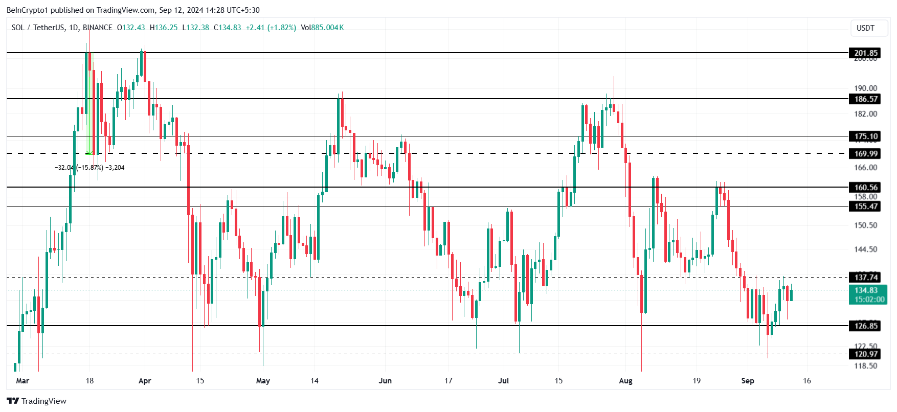 Men om Solana inte lyckas bryta över 137 USD kan den falla tillbaka till sitt tidigare stöd på 126 USD. Detta scenario skulle ogiltigförklara den optimistiska tesen och kan leda till en förlängd konsolidering, där priset fastnar inom ett snävare intervall.