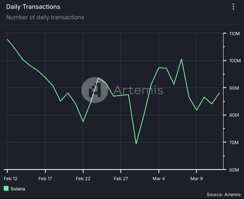 Dessutom leder denna trend till lägre transaktionsaktivitet, vilket observeras med Solana. Enligt Artemis har det dagliga antalet transaktioner på nätverket minskat med 18 % under den granskade perioden.