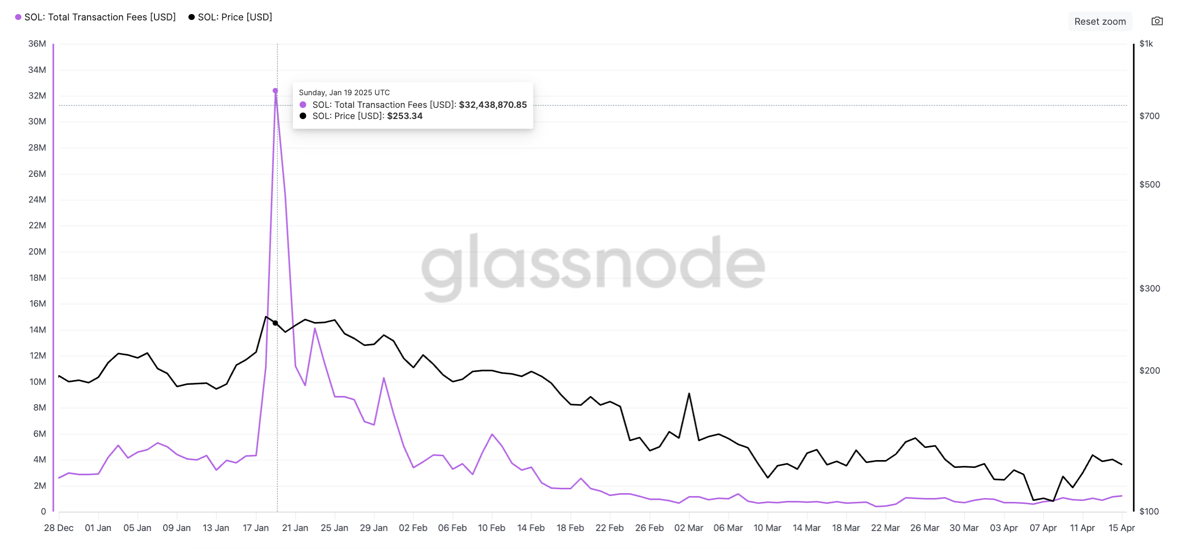 På grund av det stora inflödet av nya användare på nätverket, sköt transaktionsavgifterna i höjden. Enligt Glassnode, steg Solanas totala transaktionsavgifter till ett rekordhögt 32,43 miljoner USD den 19 januari efter MELANIA:s lansering. Samma dag steg SOL till ett rekordhögt 293 USD.