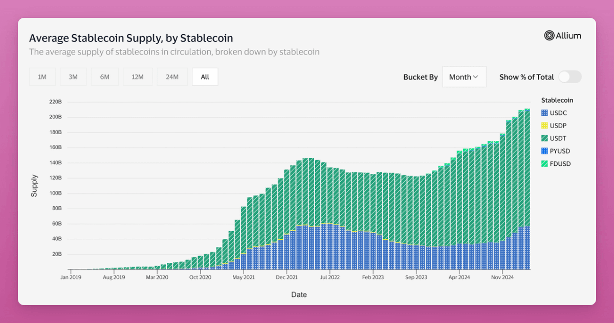 Enligt Ignas, medgrundare av Pink Brains, har stablecoinmarknadens kapitalisering ökat med 44 % under de senaste två åren och överstiger nu 200 miljarder USD.