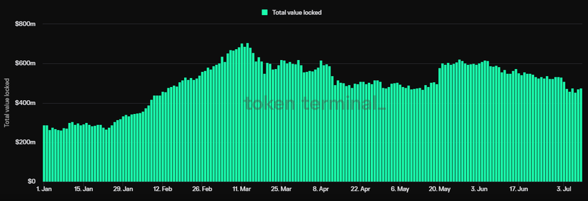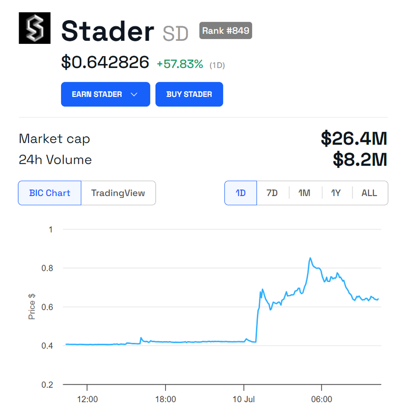 Enligt Token Terminal-data är Staders nuvarande totala låsta värde (TVL) 474,74 miljoner dollar. Även om detta representerar en minskning från årets högsta på 706,84 miljoner dollar den 13 mars, signalerar den senaste inkluderingen av Stader i Coinbases färdplan ett förtroende för dess potential och lovar ytterligare tillväxt och antagande inom kryptogemenskapen.