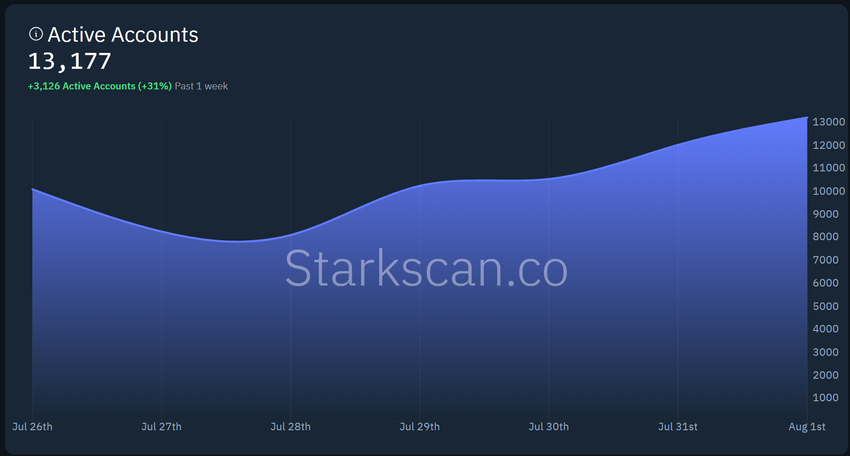 Trots dessa framgångar står Starknet inför utmaningar. Som avslöjats av Starkscan-data har plattformen upplevt en betydande minskning av aktiva användare.
