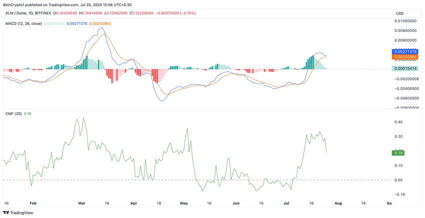En annan indikator på XLM:s hotande prisnedgång är dess fallande Chaikin Money Flow (CMF). Även om indikatorn fortfarande ligger över nolllinjen, tyder dess nedåtgående trend på att marknadsaktörerna börjar ta bort likviditet från marknaden.