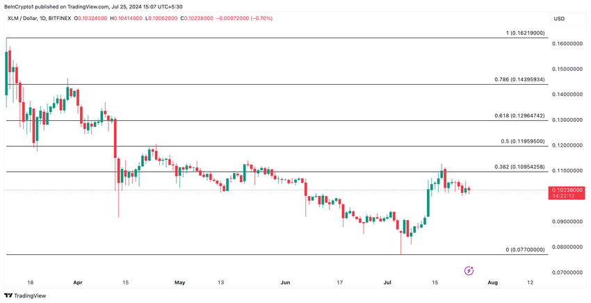 Om denna trend håller i sig och säljtrycket är större än tokenackumuleringen kan XLM:s pris sjunka till $0,077. Senast altcoinet handlades till denna låga nivå var i juni 2023.