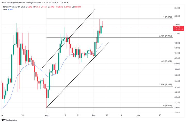 Om TON-tjurar upprätthåller denna trend kan tokenpriset öka förbi $ 7.74 och mot en ny heltidshöjd på $ 7.80.