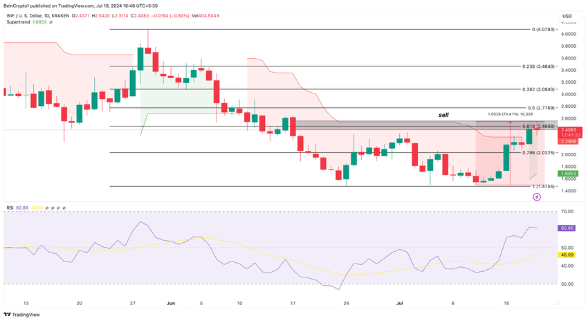 För närvarande befinner sig WIF vid en avgörande punkt, särskilt eftersom den har överträffat säljsignalen som visas av Supertrend. Skulle tokenen bryta förbi motståndet runt $2,46 kan den nå $2,77 eller så högt som $3,08.