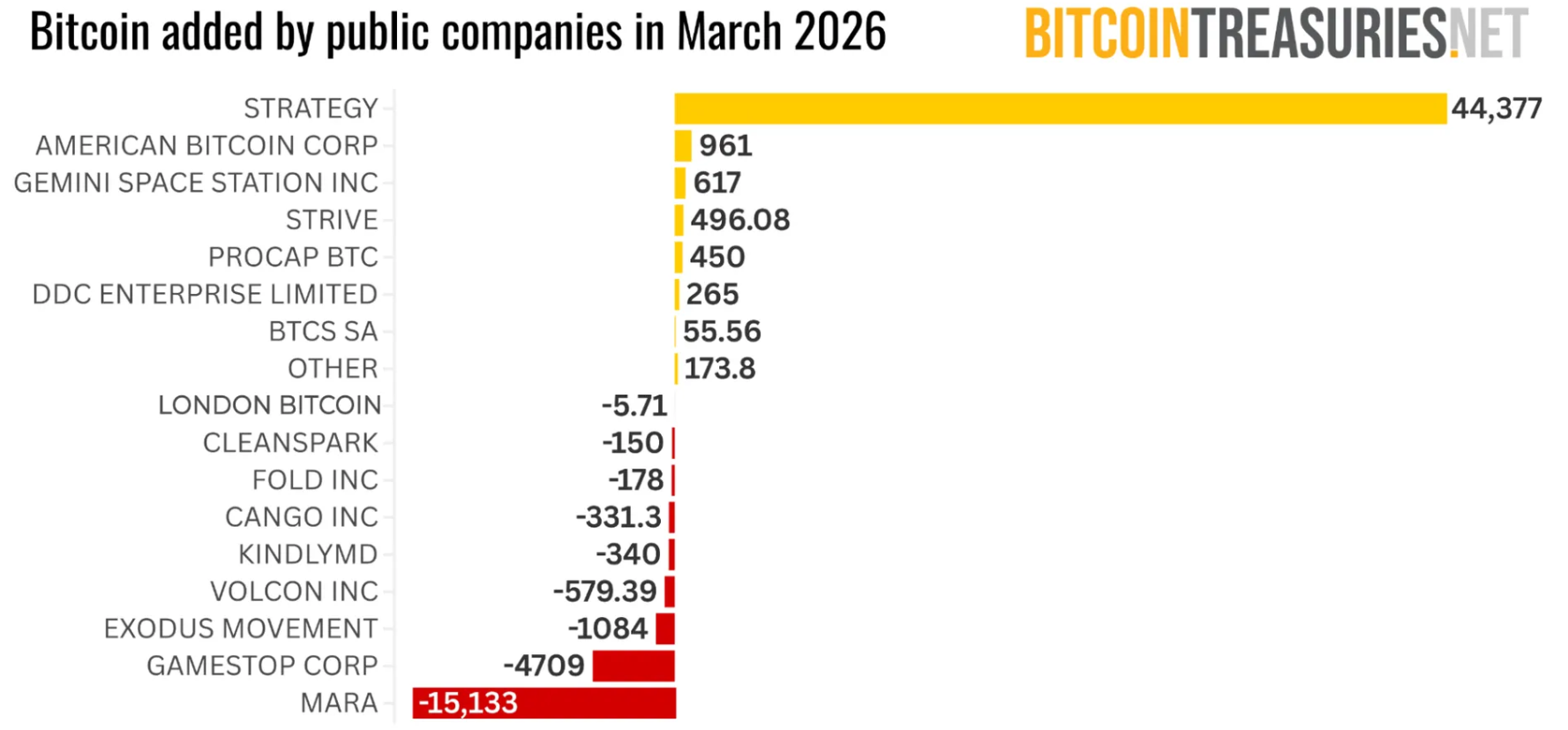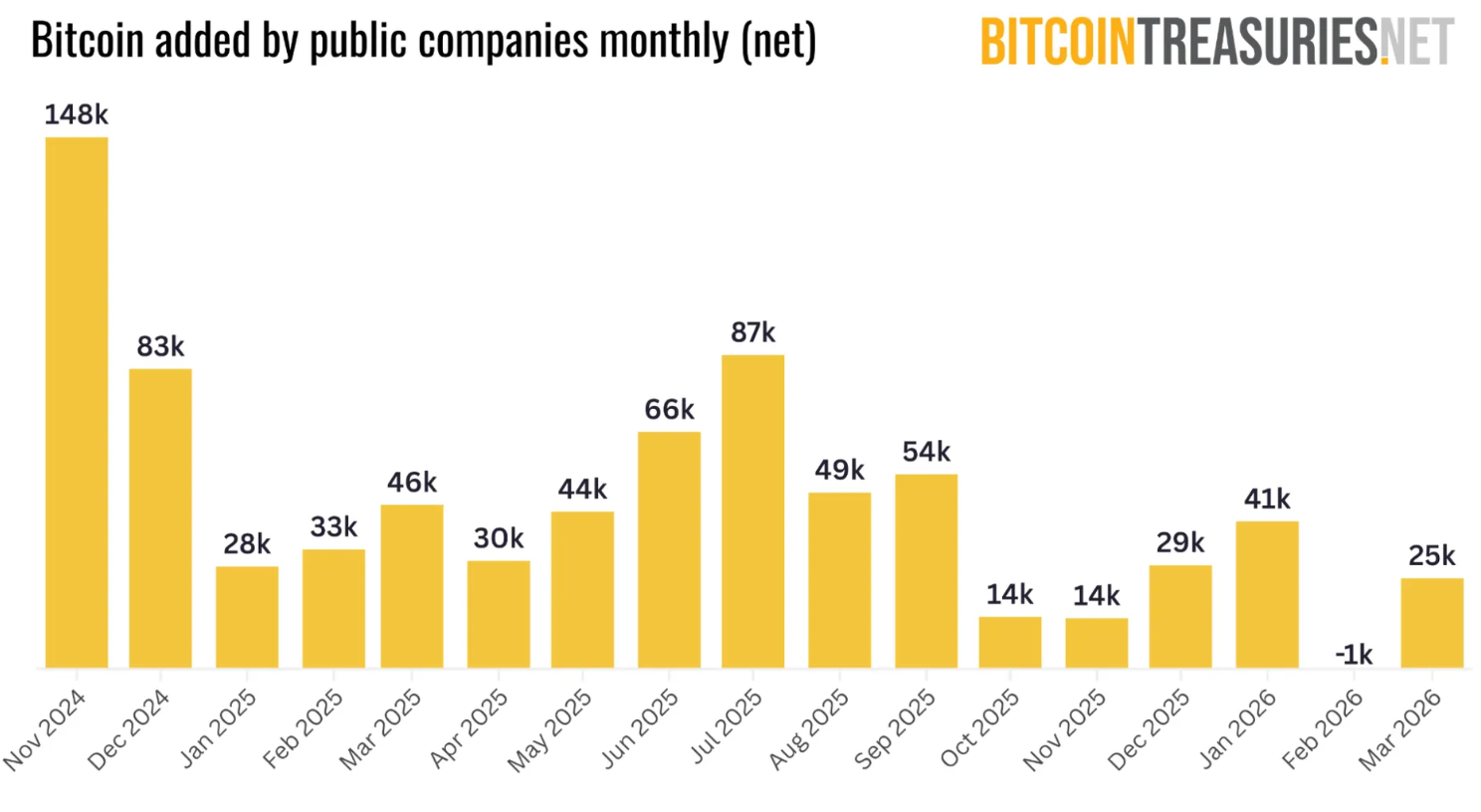 Analytiker hos BitcoinTreasuries säger att mars var en av de svagaste månaderna någonsin för företagsköp av bitcoin.