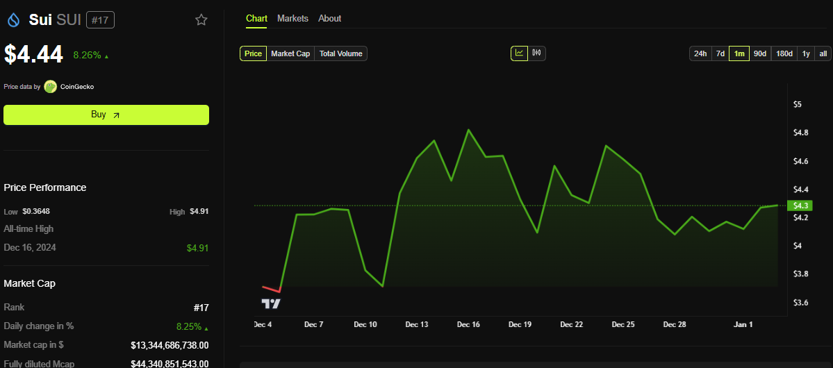 Meddelandet om Sui DePIN:s IDO och dess bredare planer har drivit positiv marknadssentiment. Enligt BeInCrypto-data har SUI-tokenens pris stigit med över 8 %, vilket återspeglar investerarnas förtroende för projektets potential att leverera långsiktigt värde.