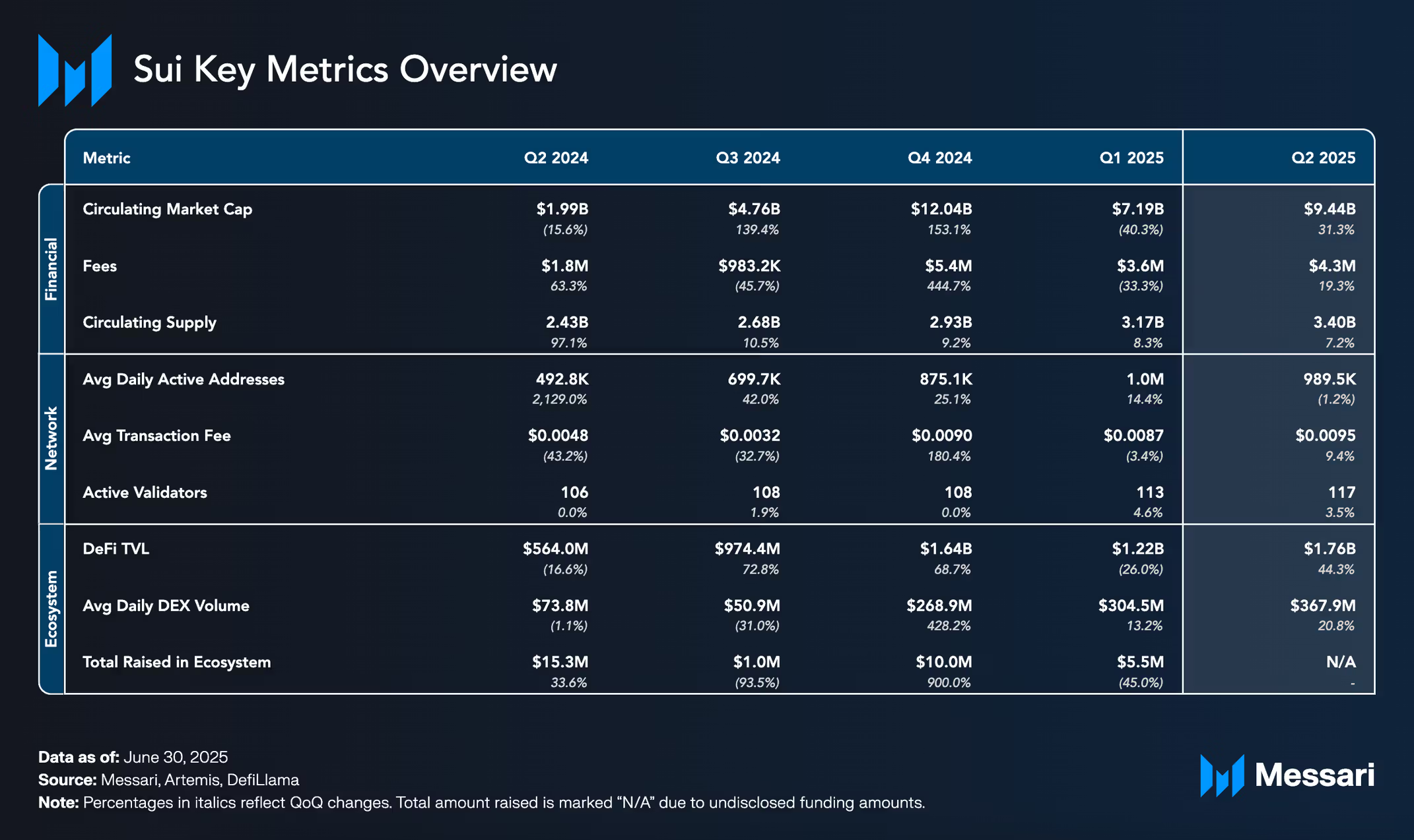 Enligt den senaste rapporten från Messari nådde Q2 2025 flera nya milstolpar för Sui Network.