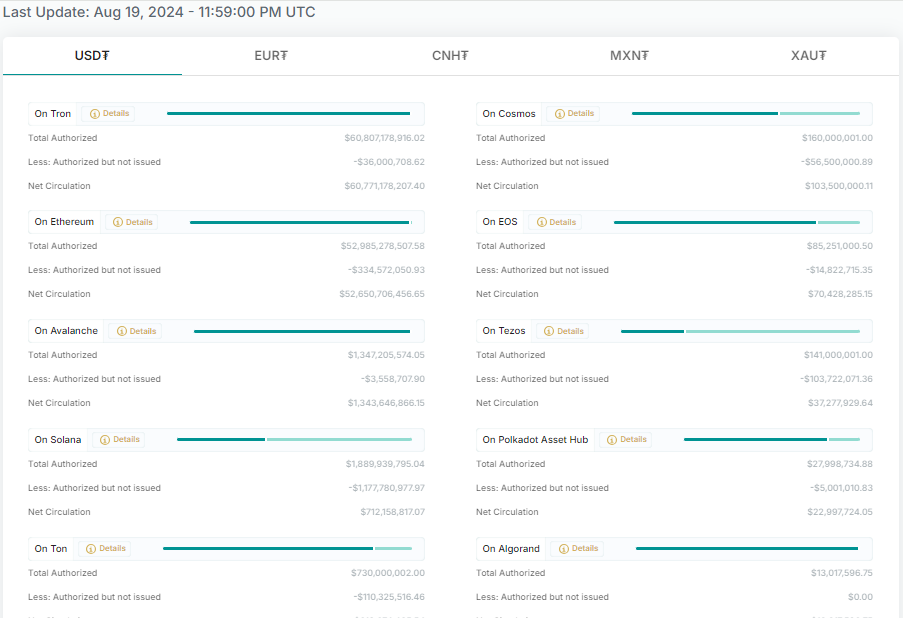 Vanligtvis fyller företag på sitt lager för att möta förväntad efterfrågan. Tethers drag tyder på en ökande efterfrågan på USDT på Tron, där tillgången har varit låg. Den 19 augusti visar Tethers transparensida endast 36 miljoner USDT på Tron, alla auktoriserade men inte utgivna.