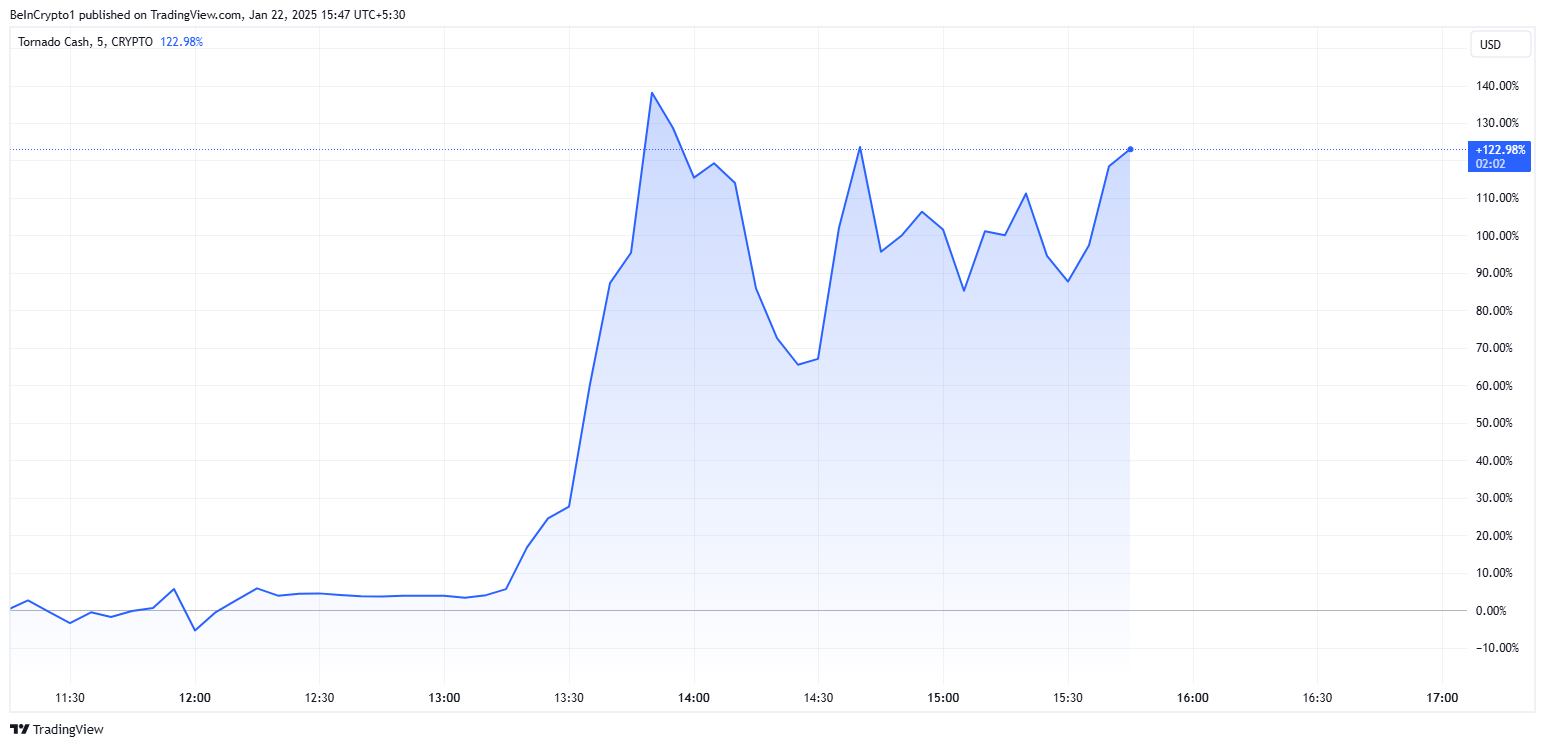 Omedelbart efter denna nyhet steg TORN, tokenen som driver Tornado Cash-ekosystemet, med upp till 140 %.